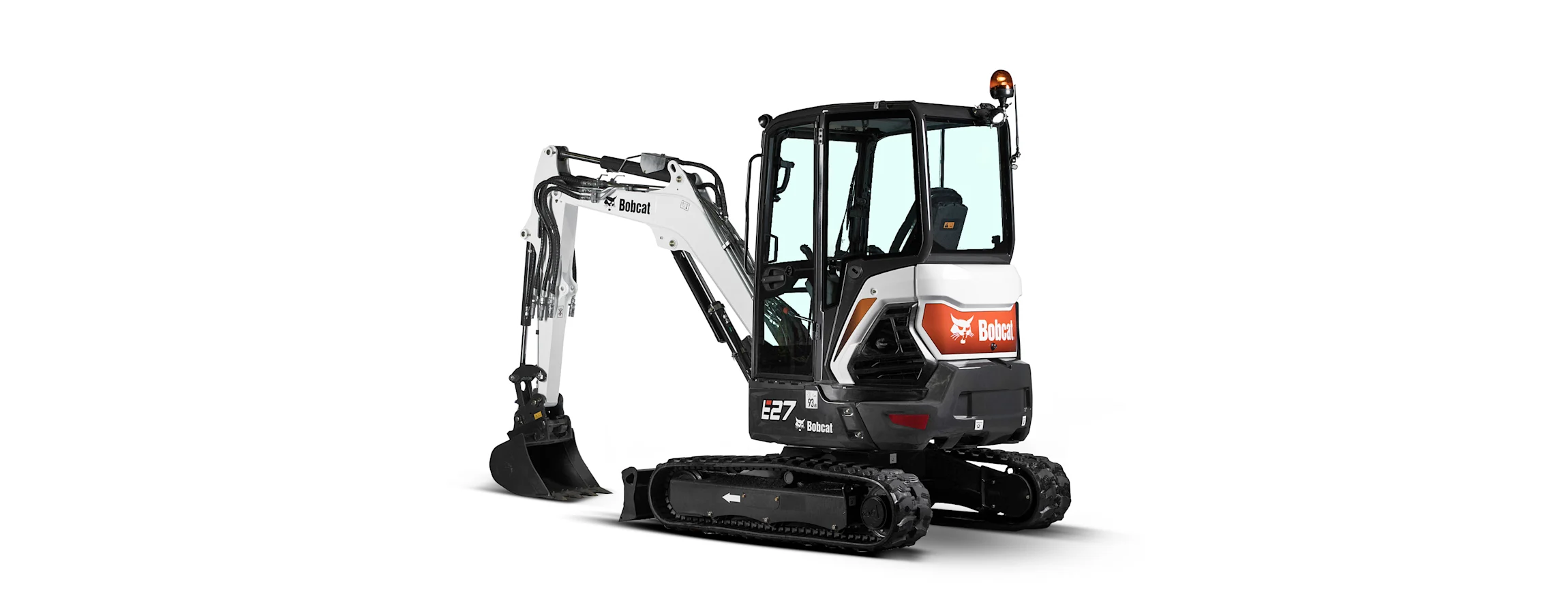 Bobcat E27 är en kraftfull kompaktgrävare i 2,7-tonsklassen som kombinerar kompakt storlek med imponerande grävkraft och stabilitet. Perfekt för arbete i trånga miljöer. Maskinen är utrustad med Steelwrist tiltrotator och levereras med tre skopor för olika typer av grävarbeten.